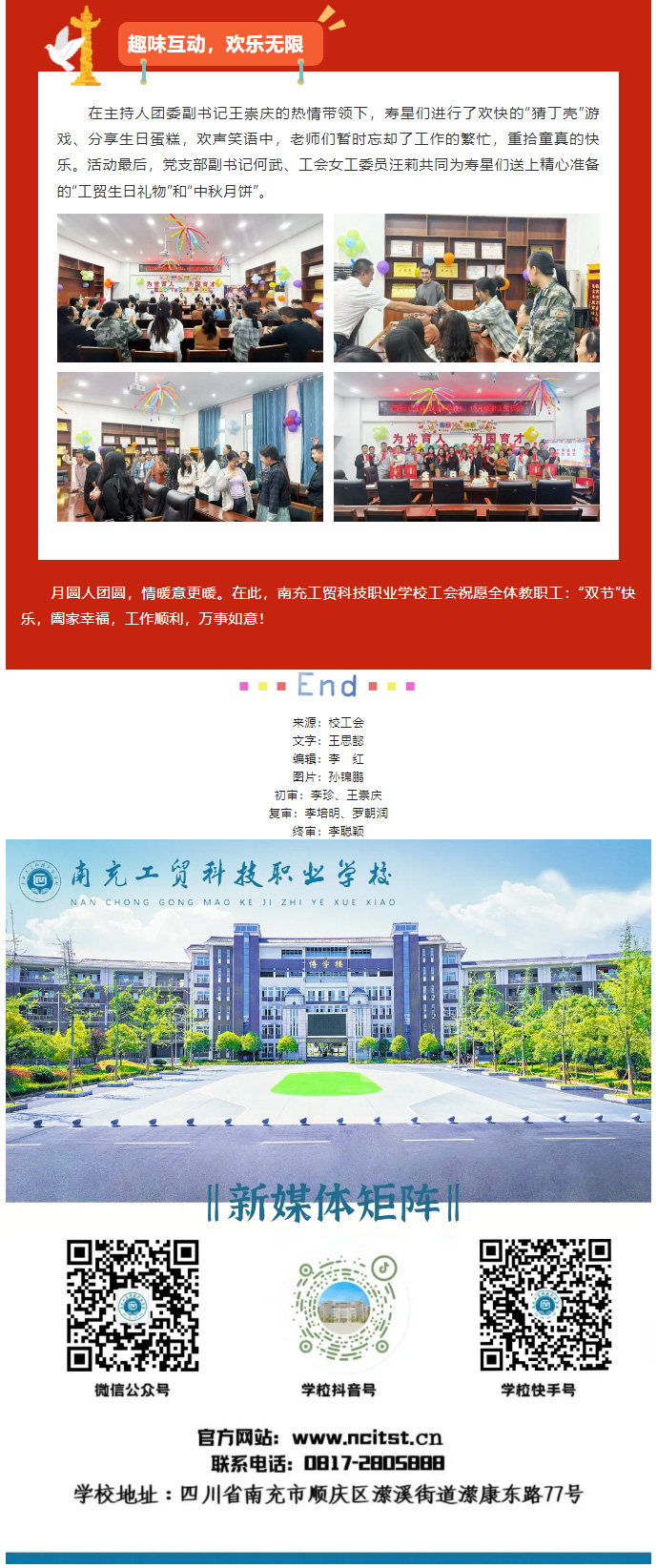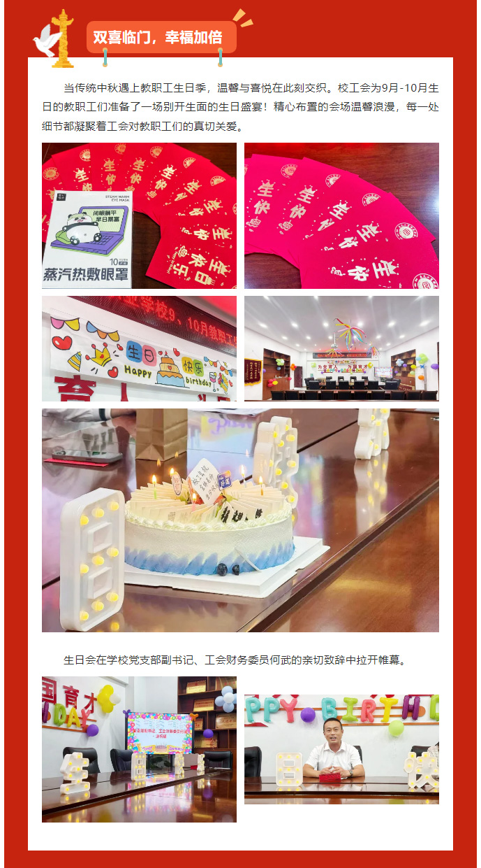 月满中秋暖意浓,生日温情伴同行——南充工贸科技职业学校工会中秋祝福暨教职工生日会温情绽放
