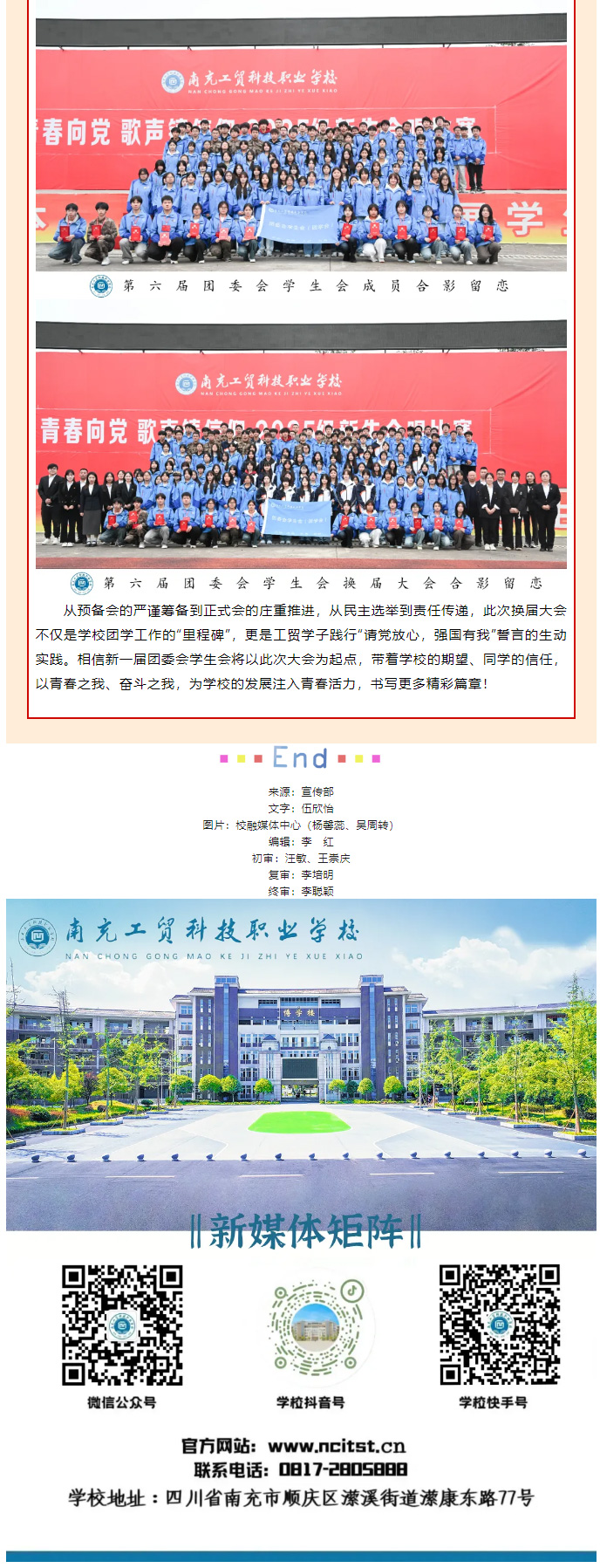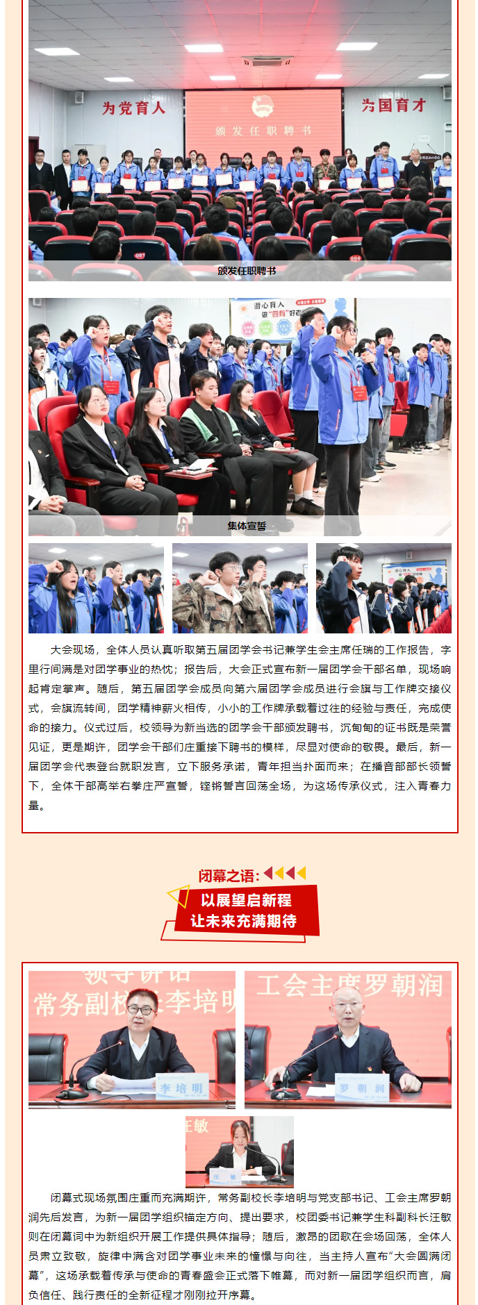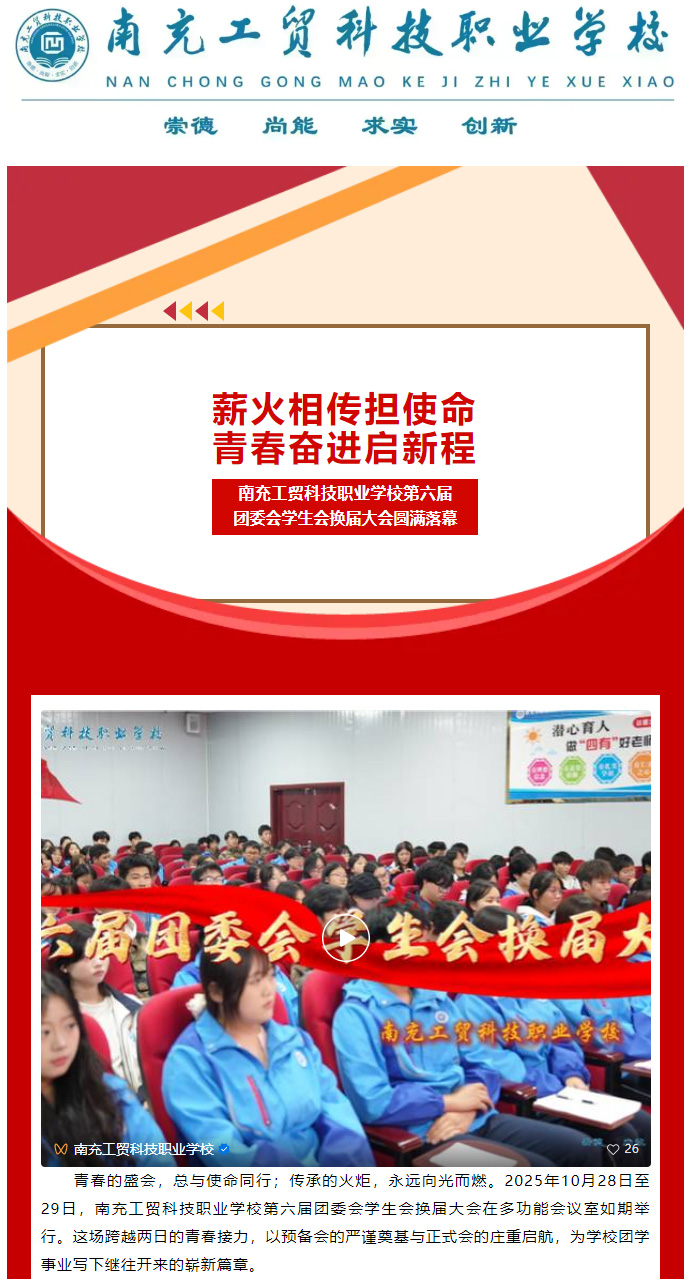 薪火相传担使命,青春奋进启新程——南充工贸科技职业学校第六届团委会学生会换届大会圆满落幕