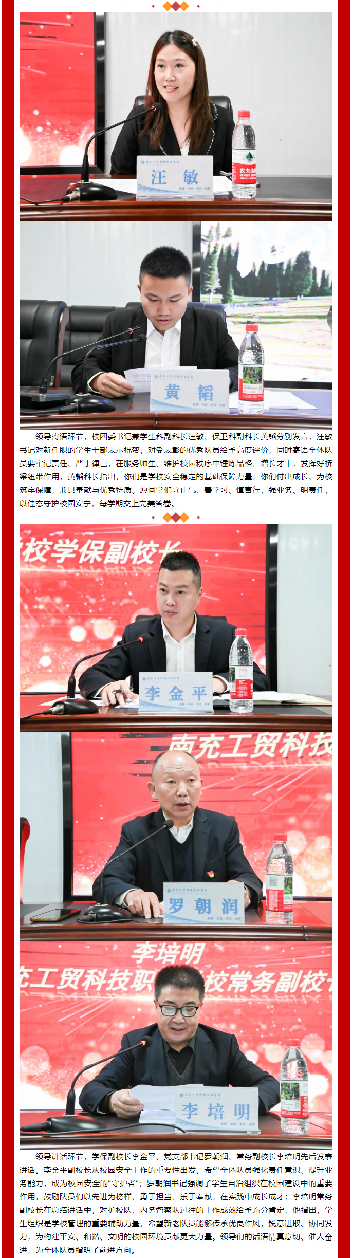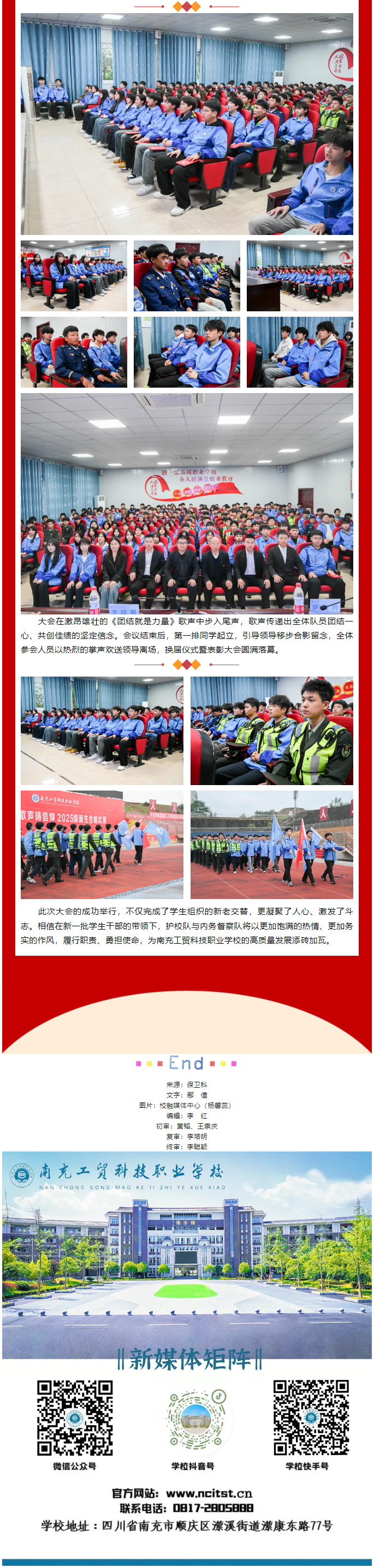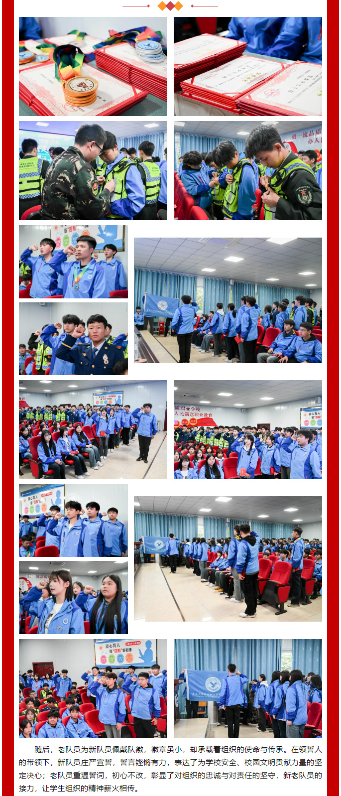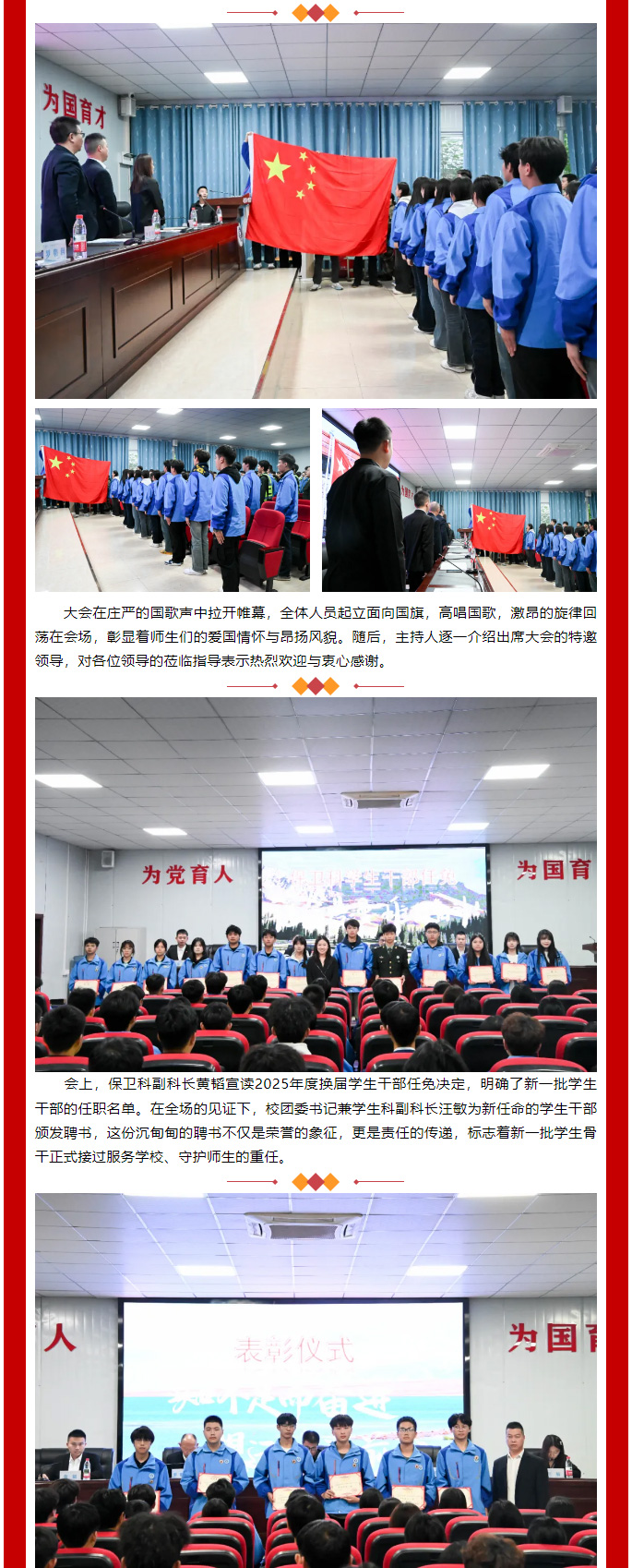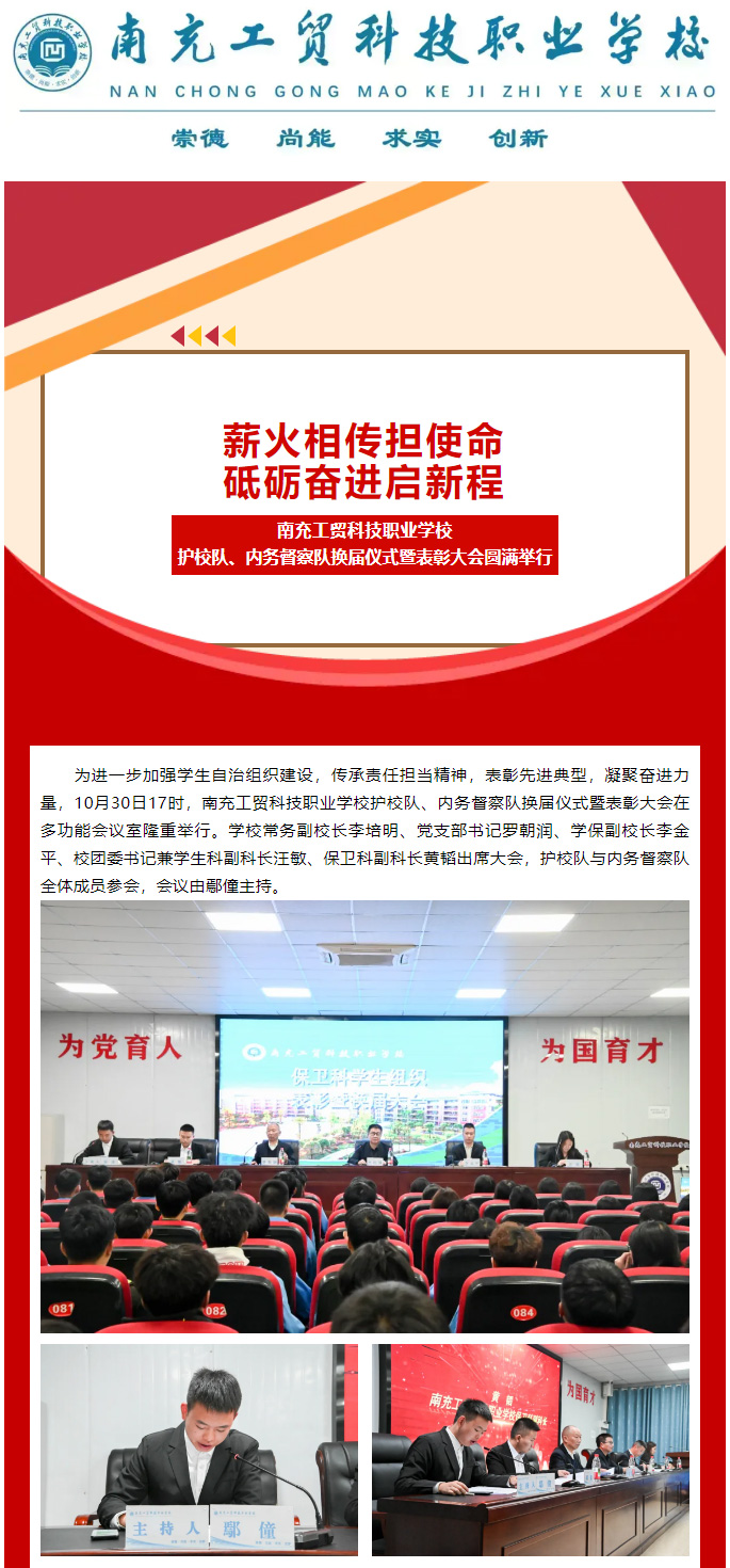 薪火相传担使命,砥砺奋进启新程——南充工贸科技职业学校护校队、内务督察队换届仪式暨表彰大会圆满举行