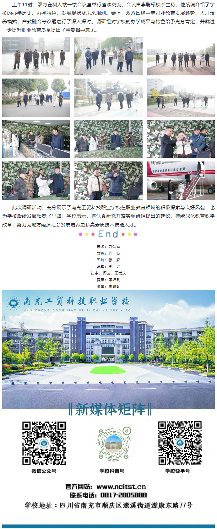 民建南充市委会领导莅临南充工贸科技职业学校调研指导