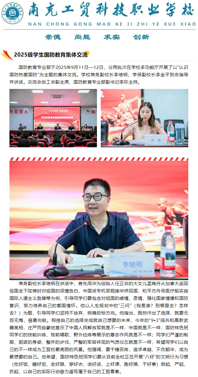 以青春之名,书写清澈之爱——国防教育专业部组织2025级学生集体交流