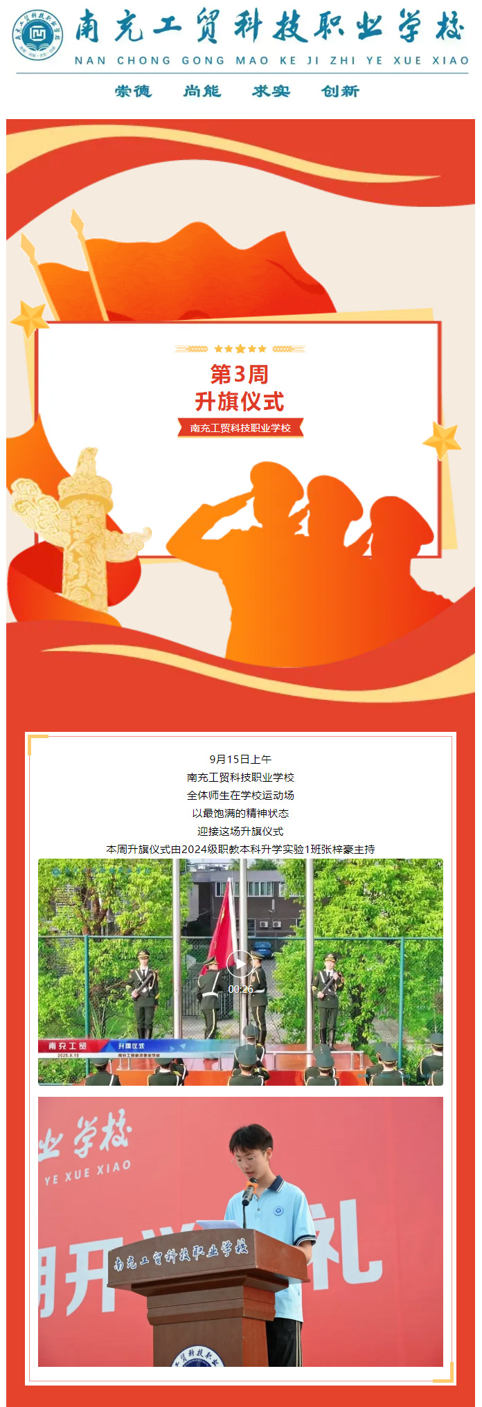 工贸思政】南充工贸科技职业学校第3周升旗仪式