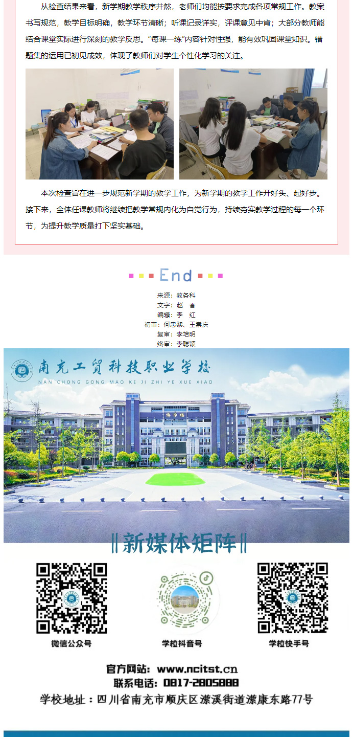 以检查促建设,以规范促发展 | 我校开展9月教学常规检查工作
