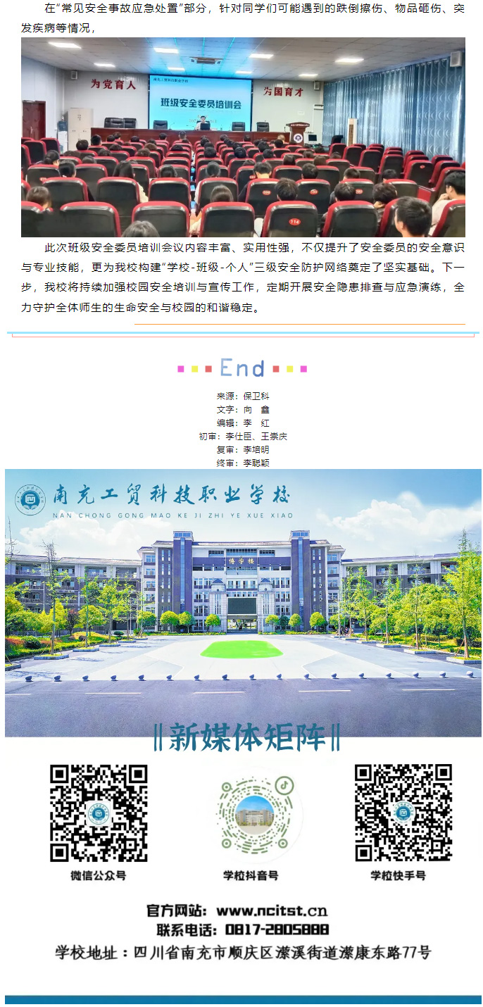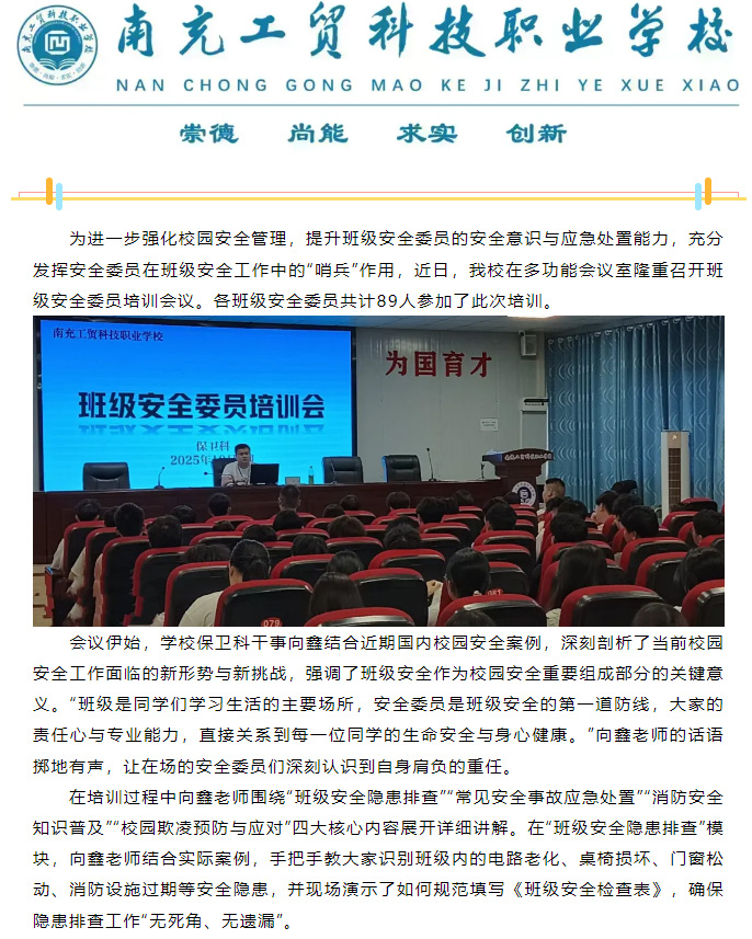 【平安工贸】筑牢安全防线 守护校园平安——我校开展班级安全委员培训会议