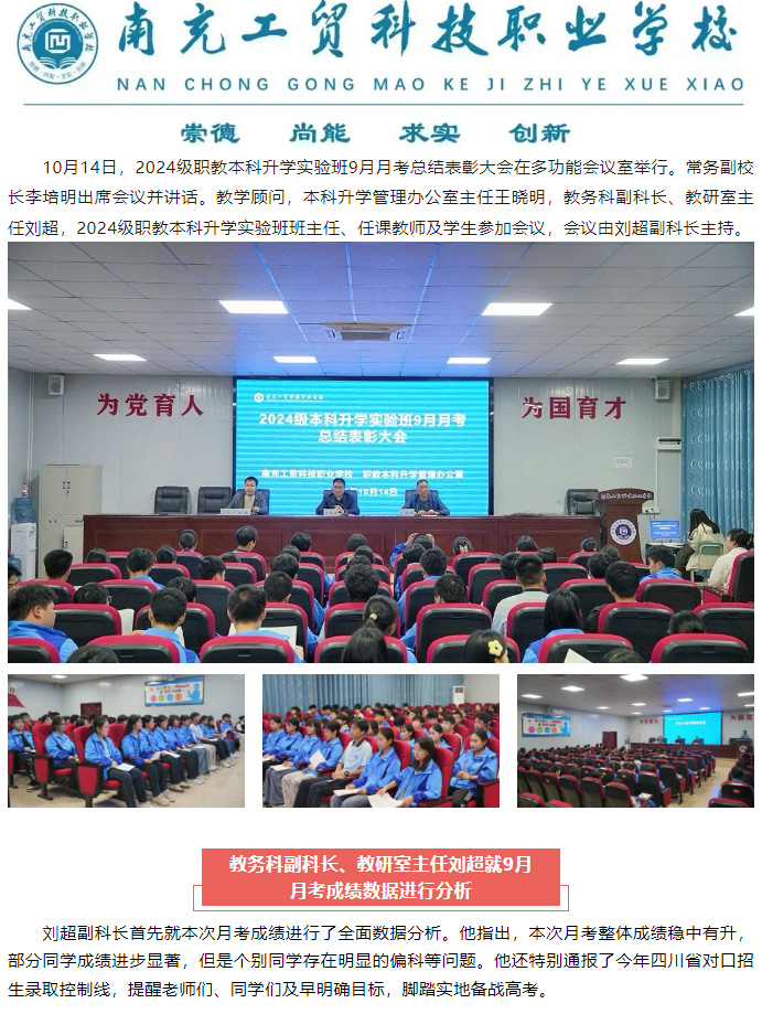 2024级职教本科升学实验班9月月考总结表彰大会召开