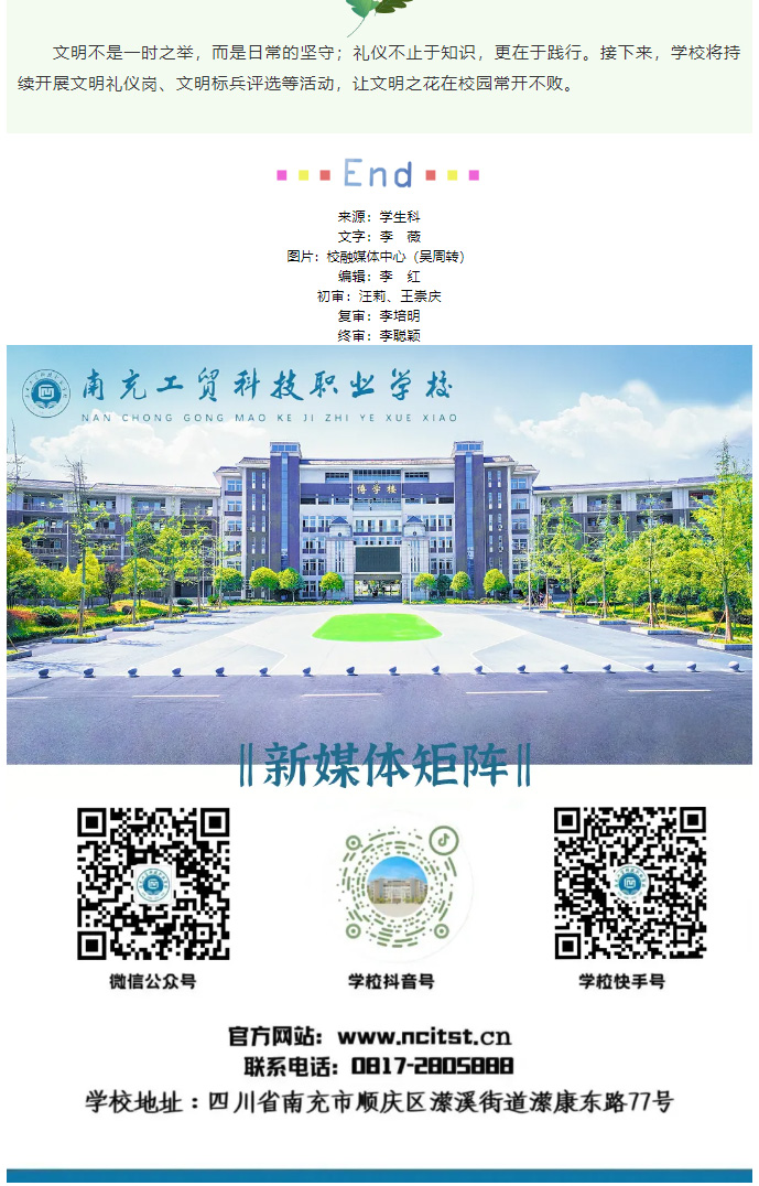 让文明成为一种习惯!南充工贸科技职业学校文明新风行动进行时