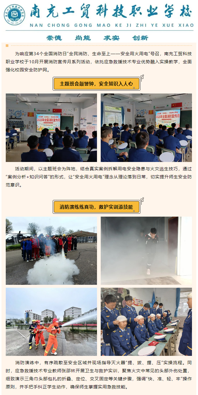 【平安工贸】南充工贸科技职业学校开展消防宣传月活动筑牢校园安全防线