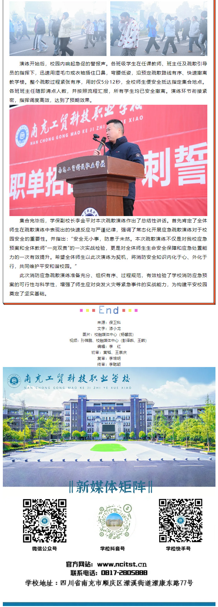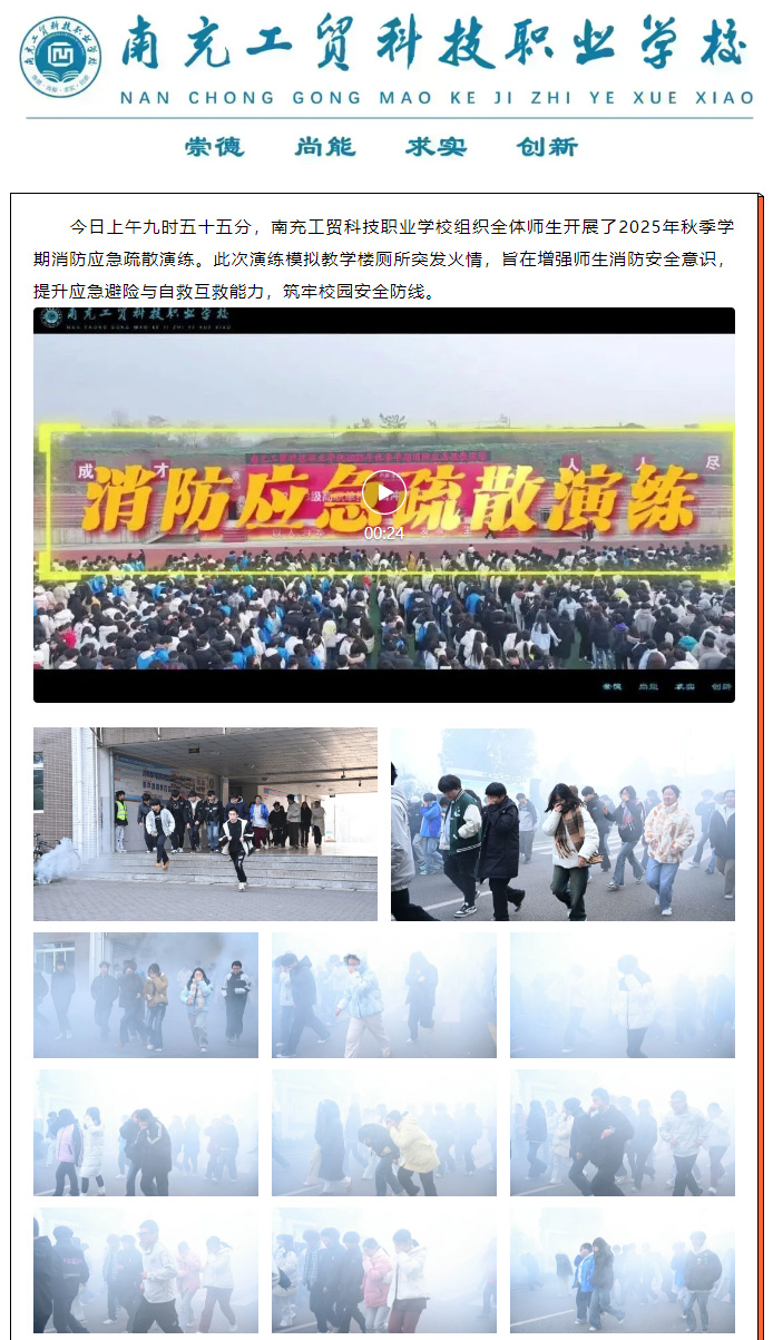 【平安工贸】疏散演练强技能 防患未然筑平安——南充工贸科技职业学校2025年秋季学期消防应急疏散演练纪实