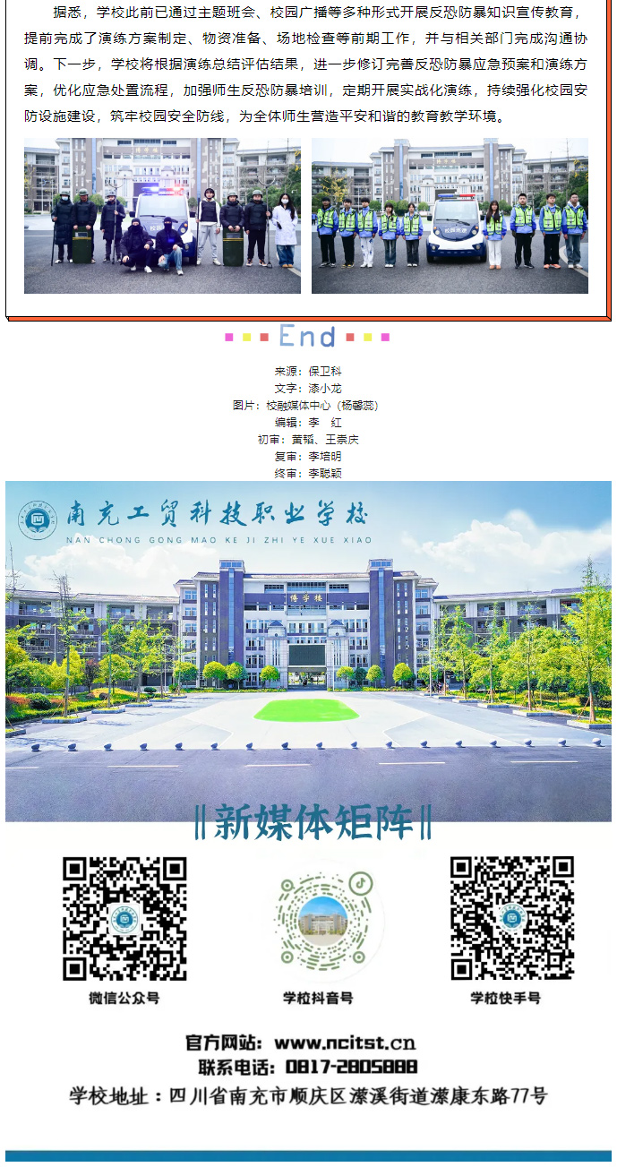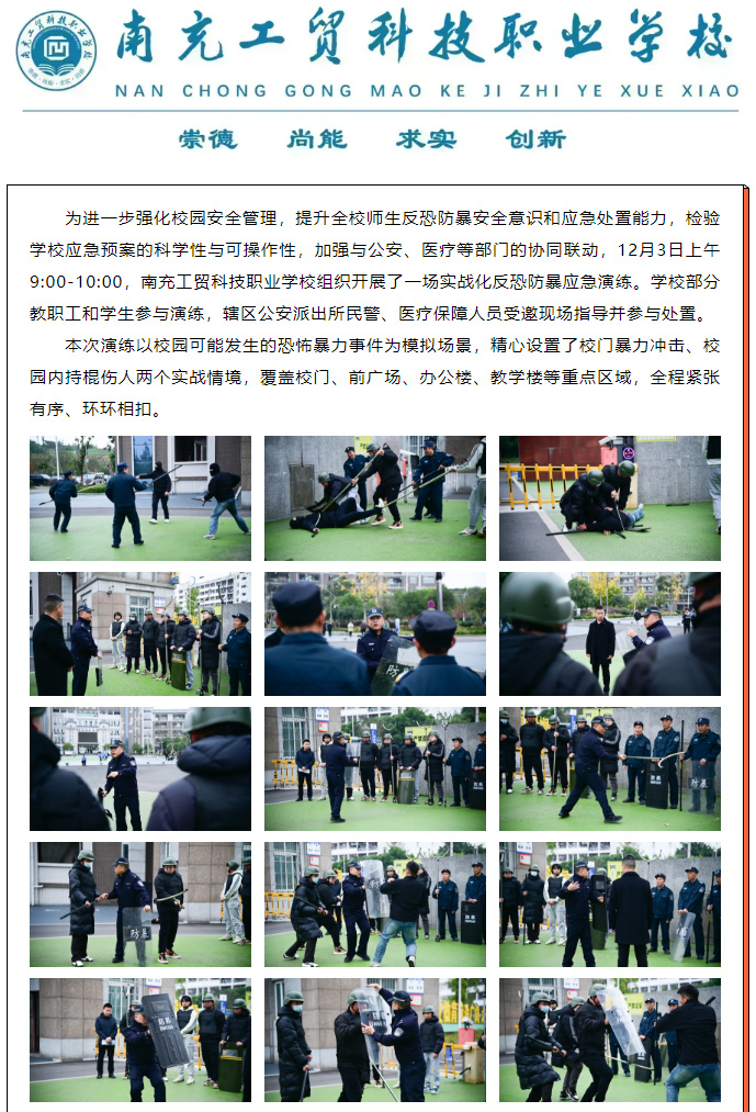 【平安工贸】筑牢校园安全防线 护航师生平安成长——南充工贸科技职业学校成功开展反恐防暴应急演练