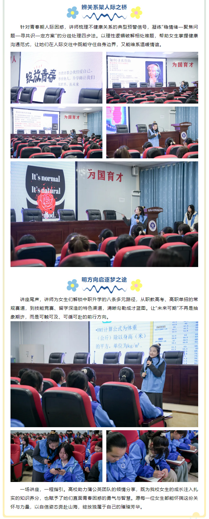 【工贸韶华】芳华护航 筑梦成长 | 高校助力蒲公英团队走进我校开展女生专题讲座