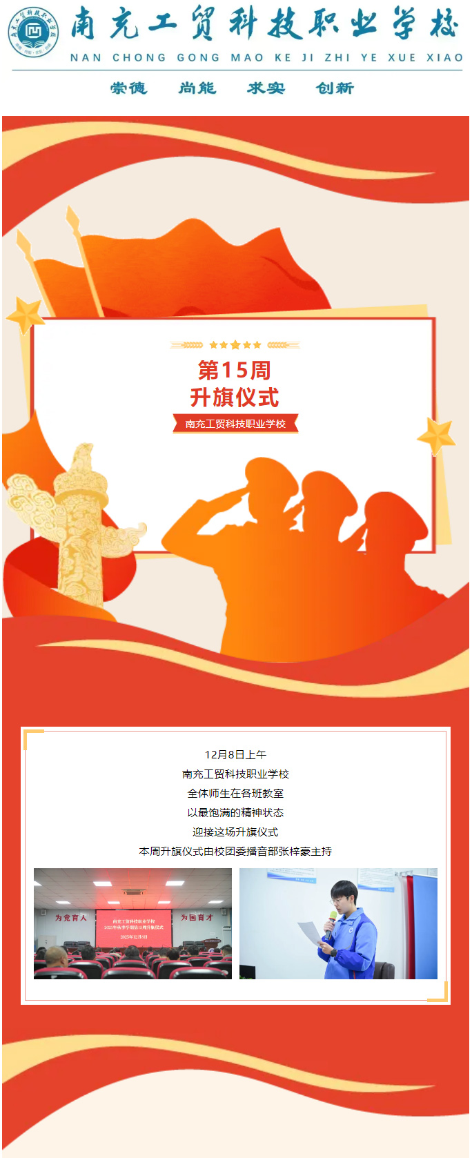 【工贸思政】南充工贸科技职业学校第15周升旗仪式