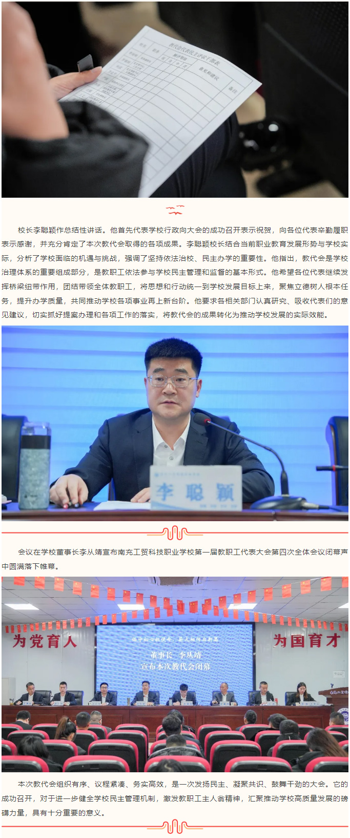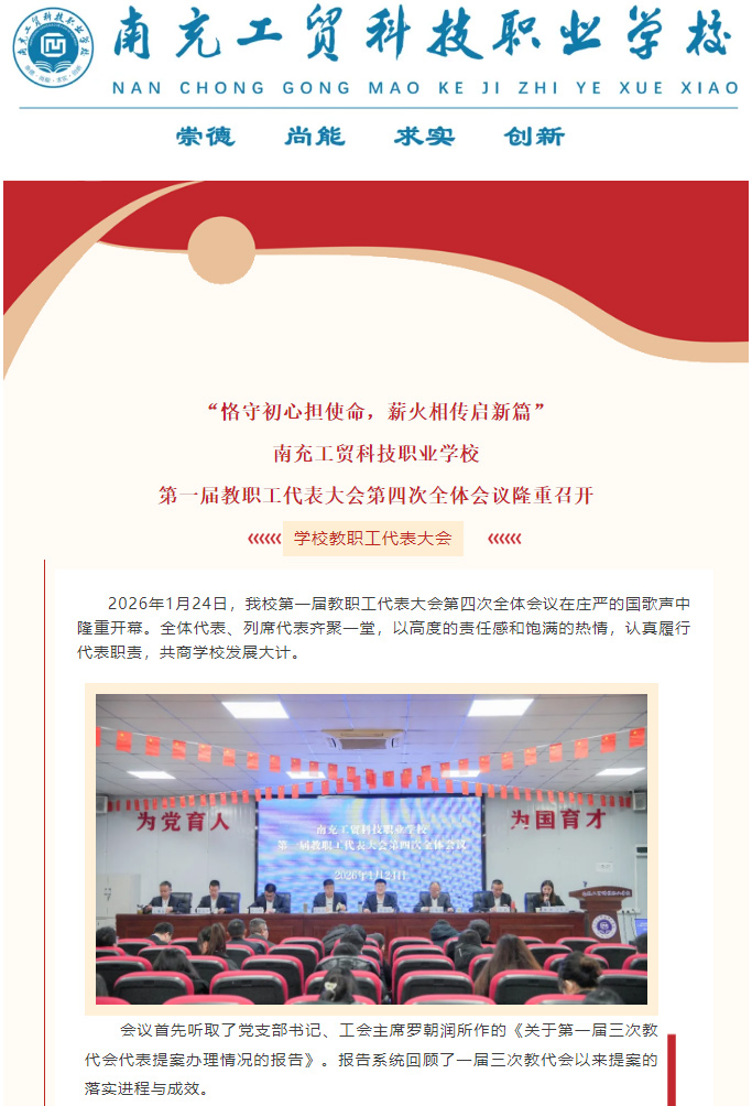 “恪守初心担使命,薪火相传启新篇”南充工贸科技职业学校第一届教职工代表大会第四次全体会议隆重召开