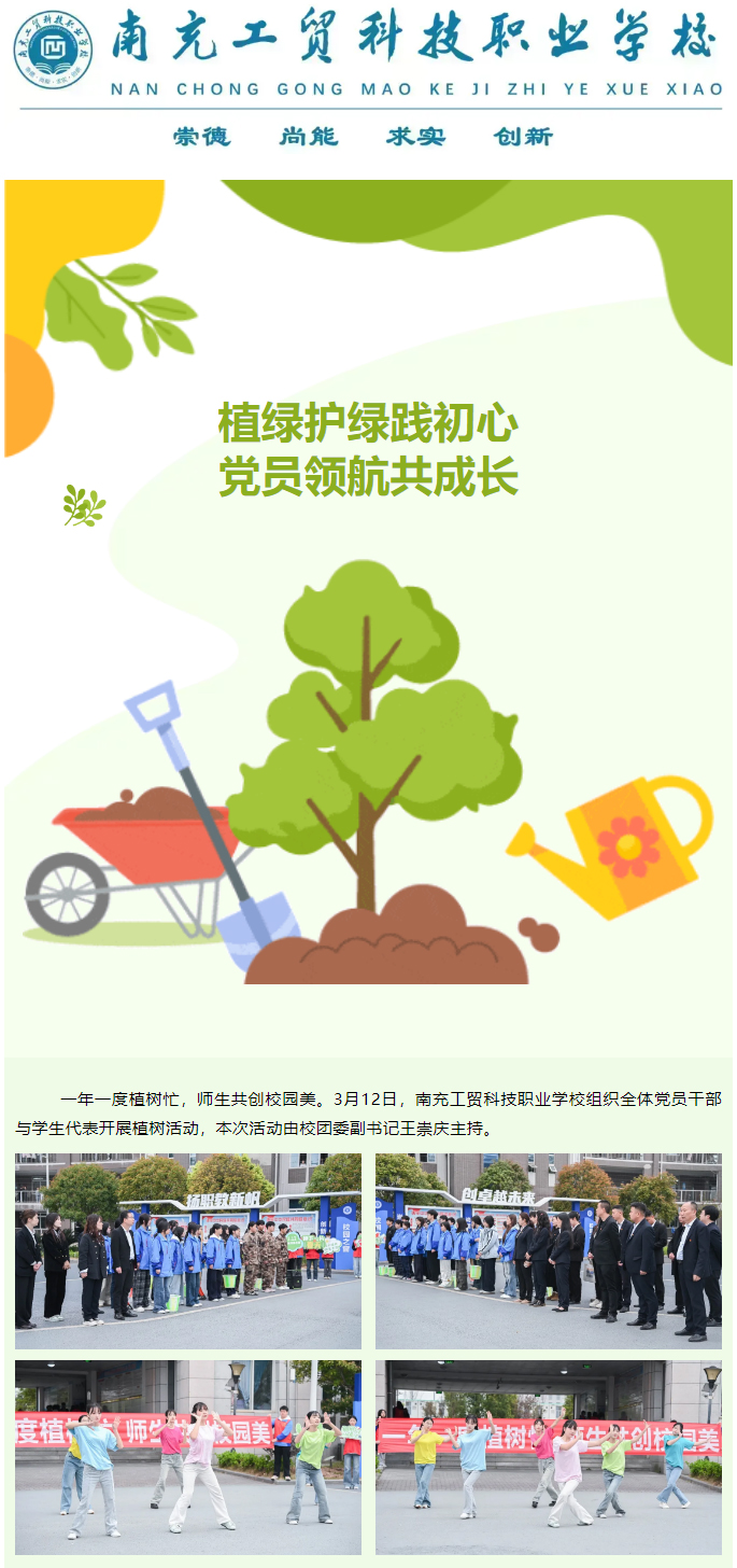 植绿护绿践初心 党员领航共成长——南充工贸科技职业学校开展植树节活动