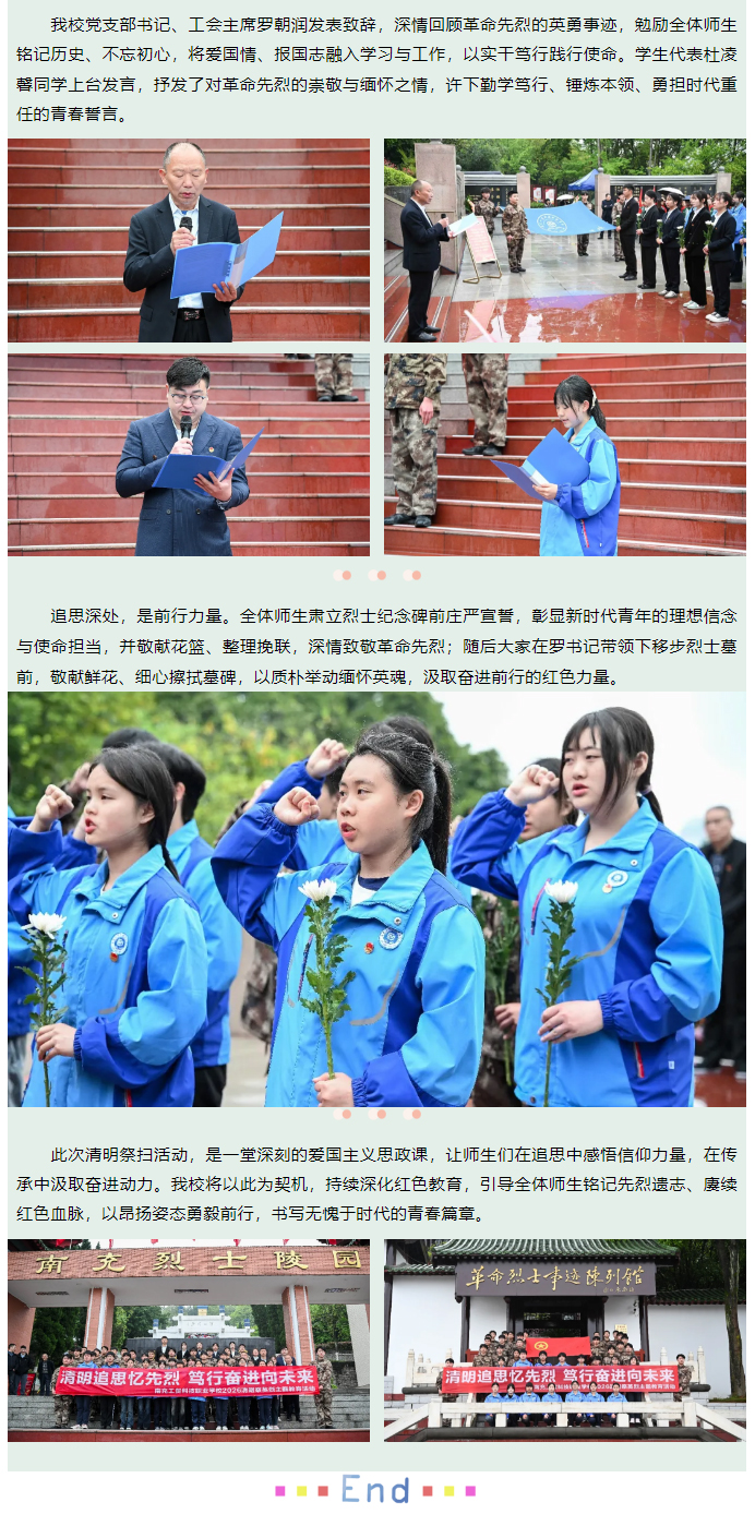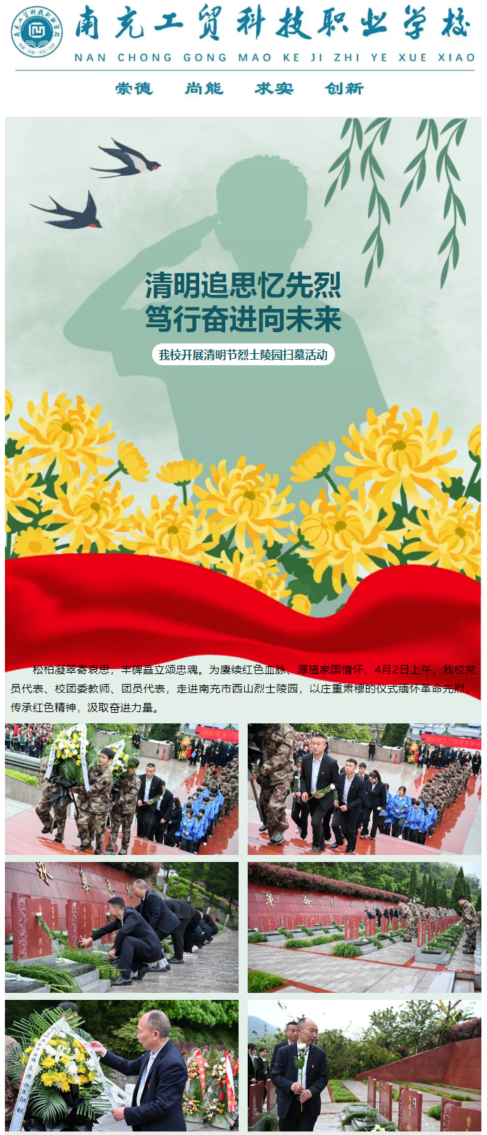 清明追思忆先烈 笃行奋进向未来 ——我校开展清明节烈士陵园扫墓活动