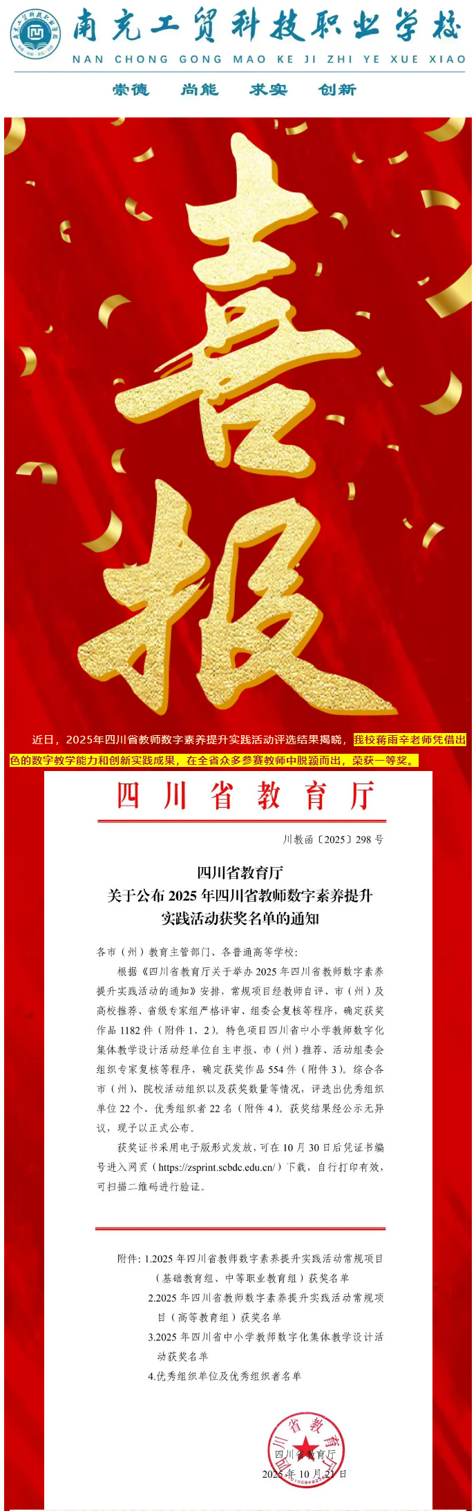 全省一等奖!我校蒋雨辛老师在2025年四川省教师数字素养提升实践活动斩获佳绩