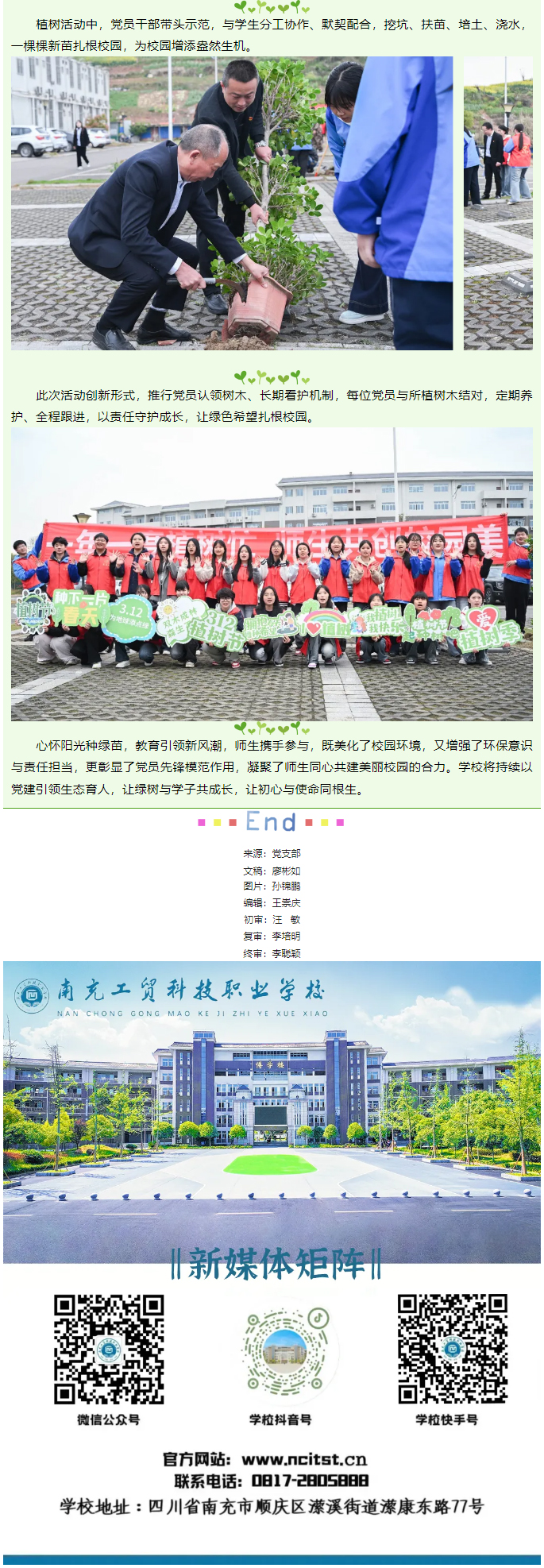 植绿护绿践初心 党员领航共成长——南充工贸科技职业学校开展植树节活动