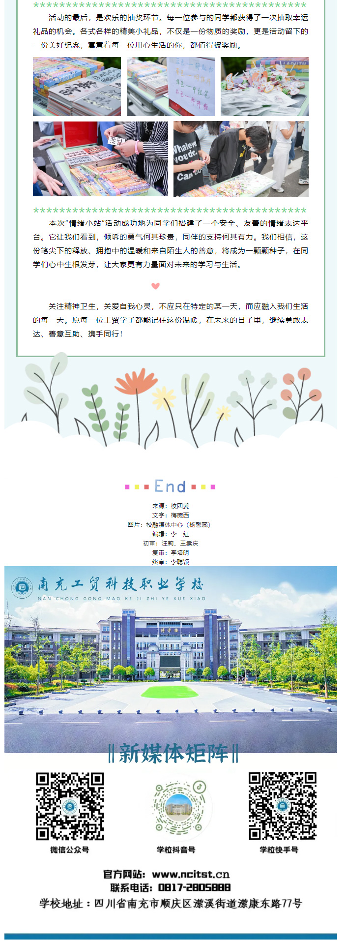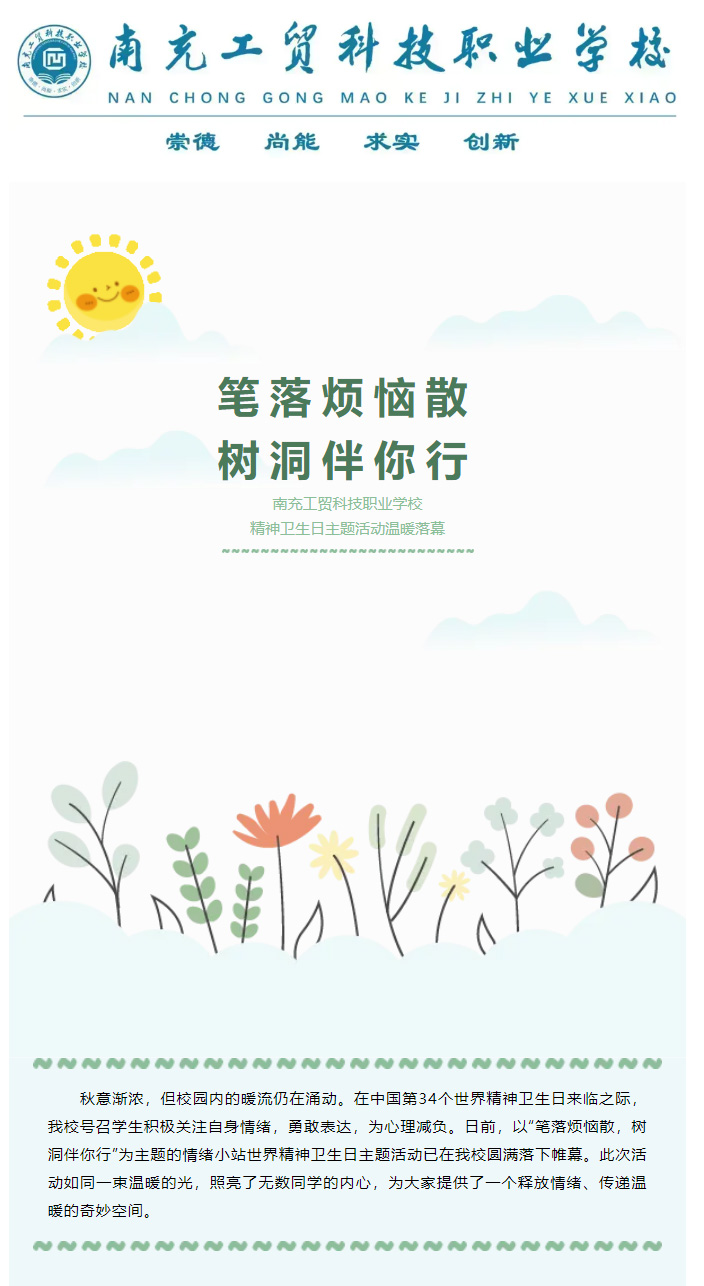 “笔落烦恼散,树洞伴你行”——南充工贸科技职业学校精神卫生日主题活动温暖落幕