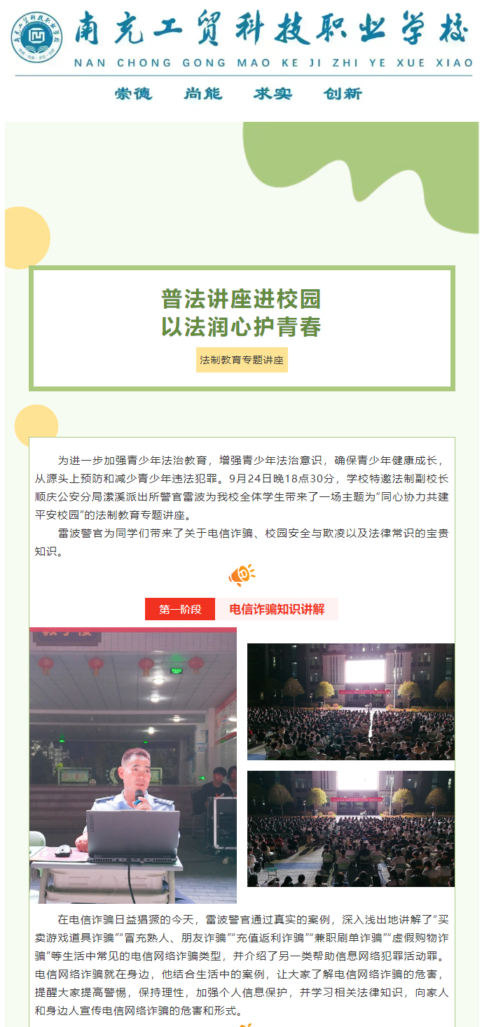 【平安工贸】普法讲座进校园 以法润心护青春——我校开展法制教育专题讲座